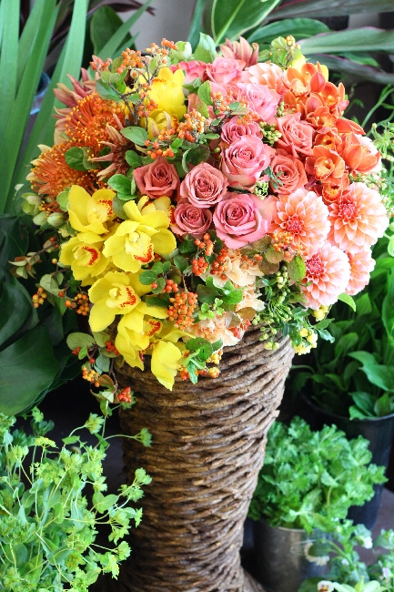 使用花材、花器等、できる限りイメージに近づけますが、仕入の状況により同じ仕上がりとはならない場合が多いのでご了承の上でご依頼ください。